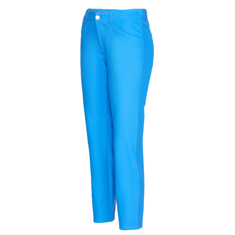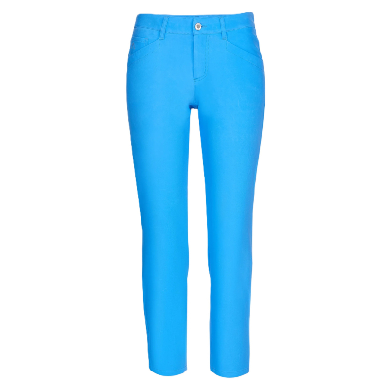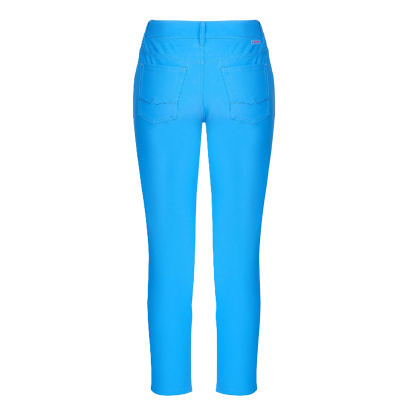 Alberto golfbroek Fx4 Dry Cooler Mona Capri, regular fit model in de kleur blauw. De broek is op capri lengte, wat wil zeggen dat de broek over de knieën komt, maar net iets korter is dan een 7/8 broek. De broek bestaat uit 90% polyamide en 10% elastan. Deze blauwe capri golfbroek behoort tot de seizoenscollectie van de Mona Capri Fx4 DRY COOLER. Modelnummer 2320 7435, kleurnummer 820.